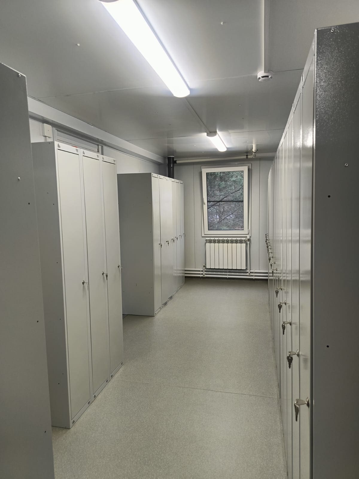 Здание комплектовалось системой водяного отопления с учетом ИТП, пожарной сигнализацией, СКУД, мебелью и бытовой техникой.